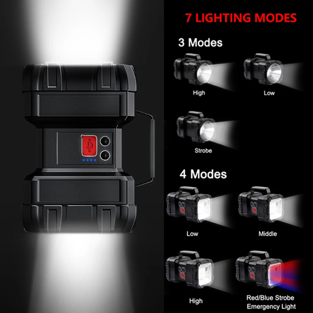 Product Name: Leistungsstarke LED Taschenlampe XHP50 Wasserdichte Doppel Kopf Such USB Aufladbare High Power Scheinwerfer Laterne Taschenlampe Mit Basis