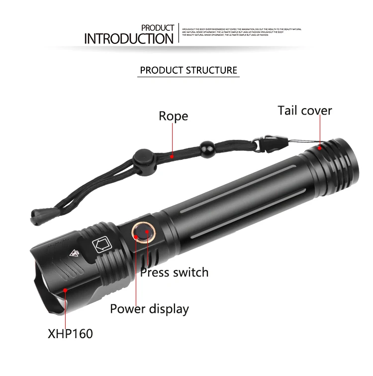 Product Name: 90000lumen Leistungsstarke XHP160 LED Taschenlampe USB Aufladbare Zoomable Fackel Lanterna Verwendung 18650 26650 Für Camping Angeln Licht