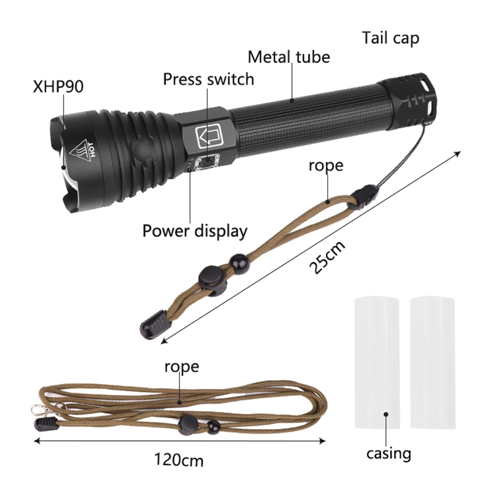 Product Name: Super Helle XHP90/70,2 LED Taschenlampe Super Leistungsstarke Taschenlampe USB Zoom Lampe Zoom Taschenlampe Verwenden 18650 26650 Akku