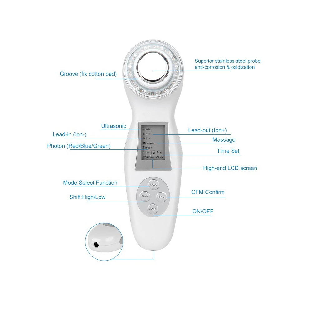 Product Name: Vibrieren Gesicht Massager 3mhz Ultraschall Photon Licht Therapie Galvanische Ionen Gesichts Schönheit Gerät Anti Aging Falten Entfernung Maschine