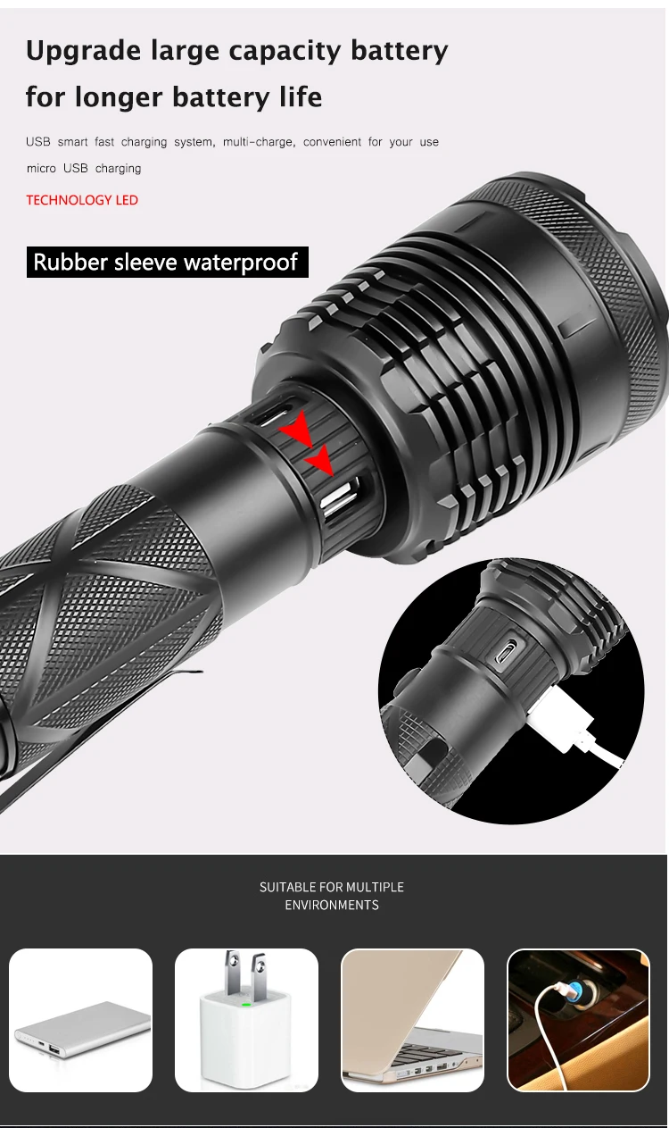 Product Name: 80000LM Leistungsstarke Taschenlampe XHP70 LED XHP 70,2 Wasserdichte Zoom Taschenlampe USB Aufladbare Verwenden 26650 Batterie